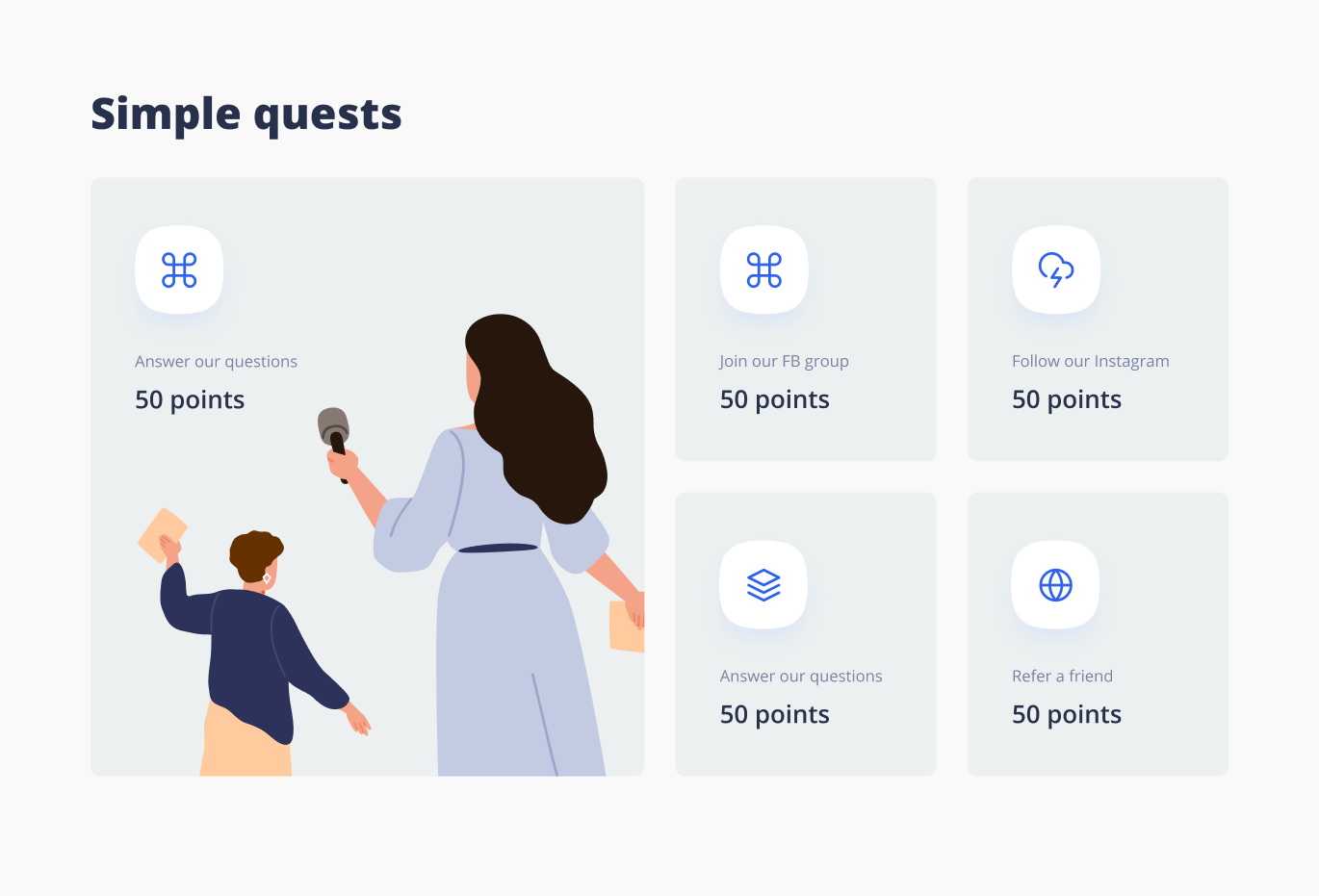 Introduce special tasks for your customers and combine them into sets of engaging quests. Multiple pre-determined quests are available.